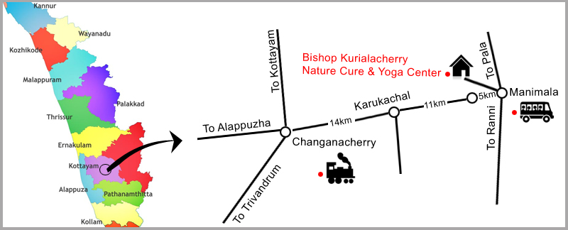 32 km away from Kottayam 26 km away from Changanacherry 5 km away from Manimala 11 km away from Karukachal |